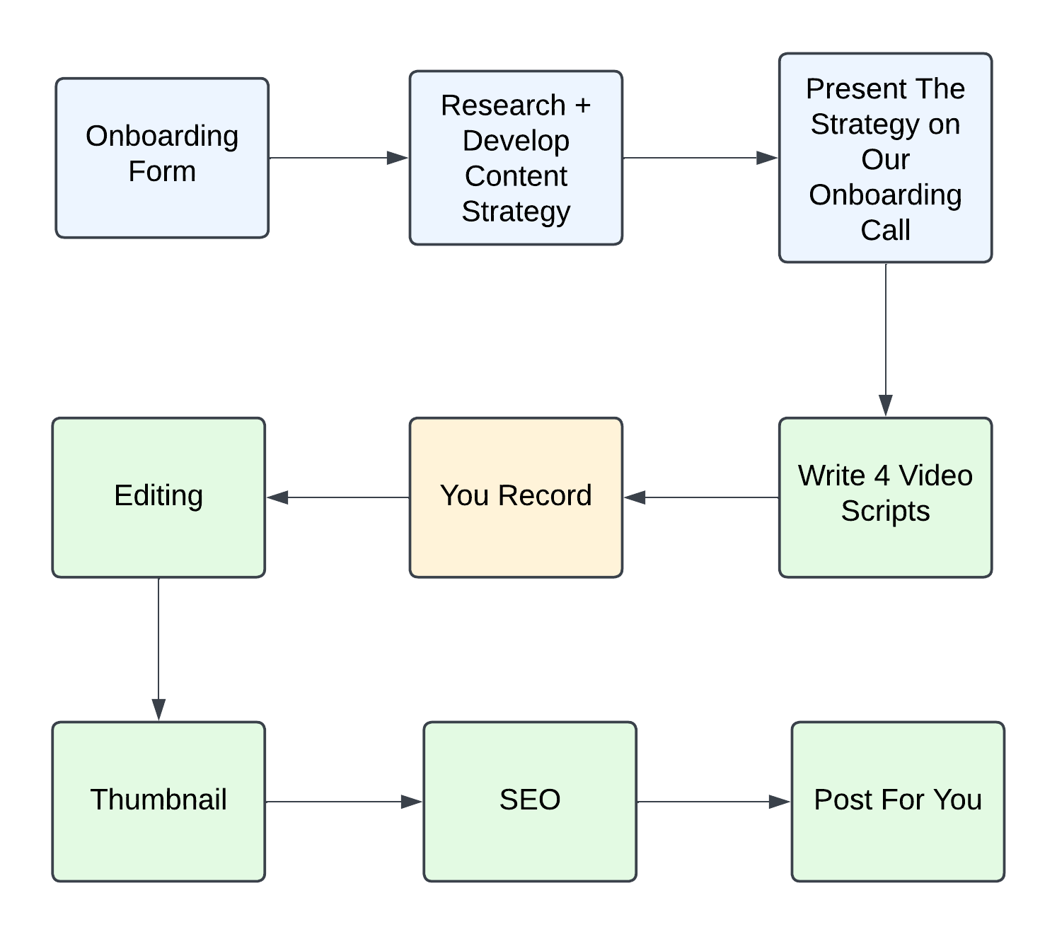 Our team will transform your recordings into beautiful youtube videos. Depending on your goals, we can make as many or as few videos as you like. You'll have enough content to post once or twice a week.